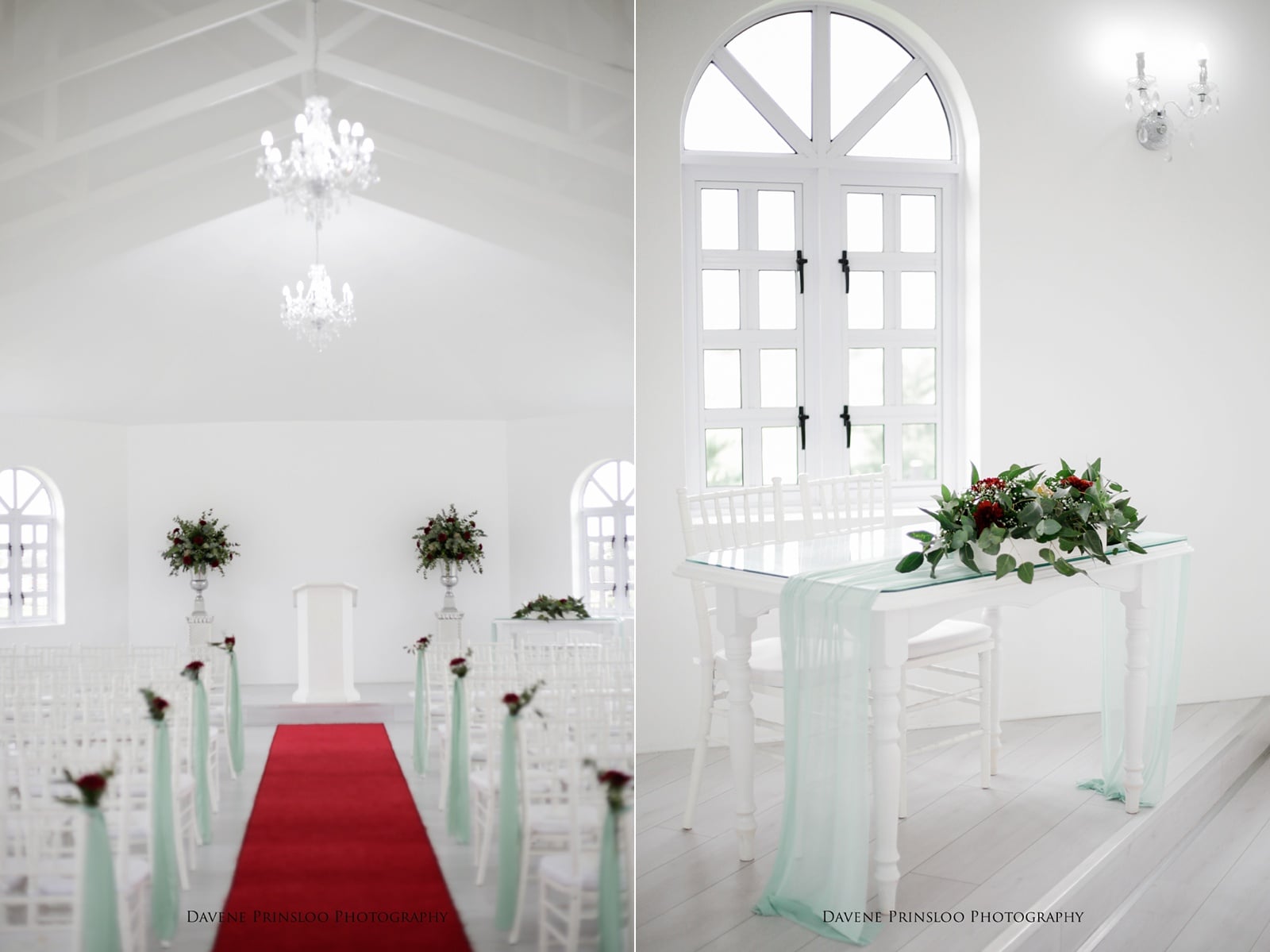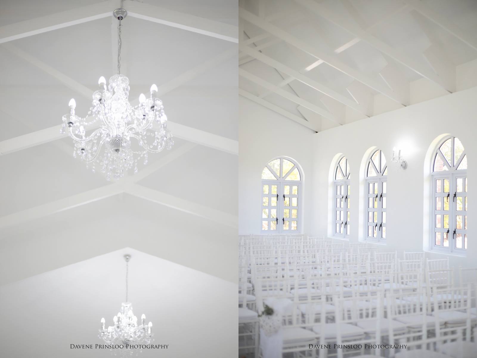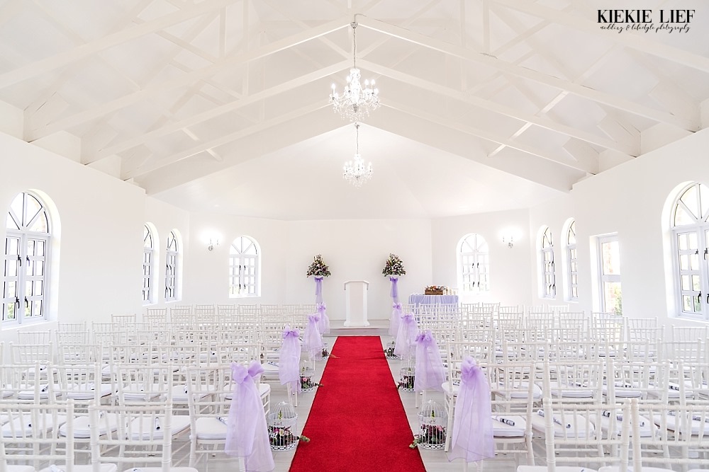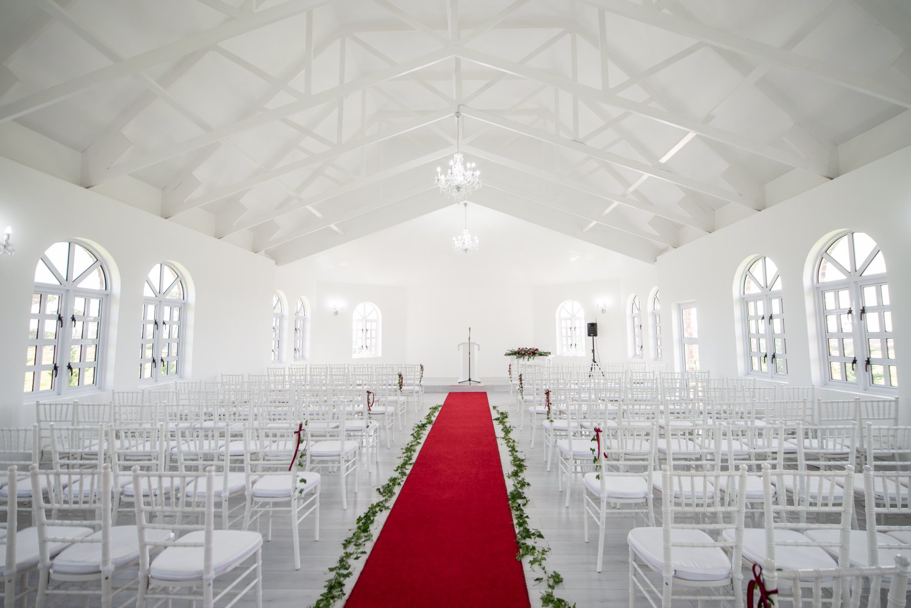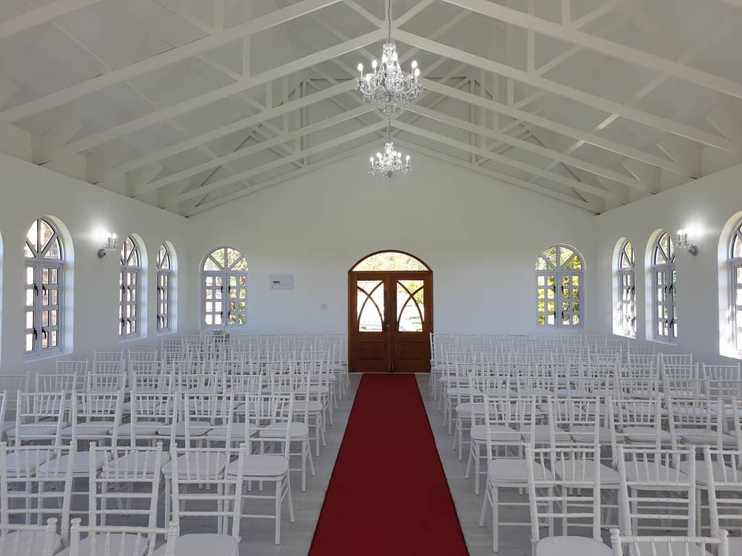 The chapel features beautiful designed doors, stunning white oval windows and chandeliers that will contribute to a romantic wedding filled with love and peace.
